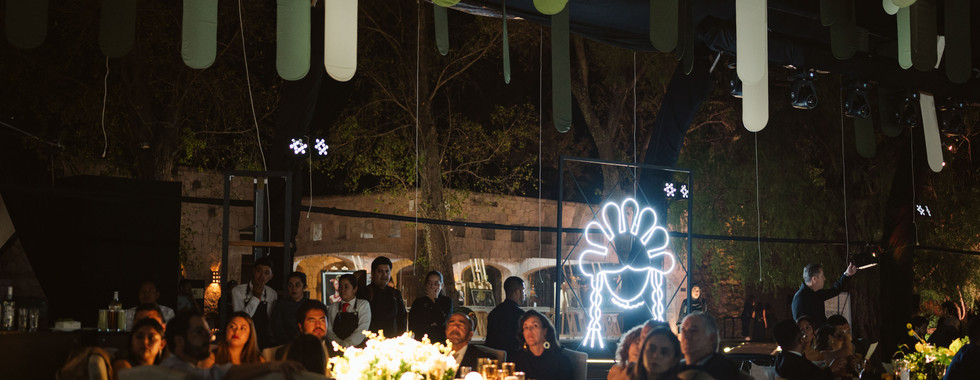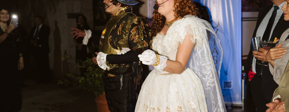 Desde el momento en que los invitados cruzaron las puertas de la hacienda, fueron recibidos con una representación teatral que narraba una romántica historia de amor en este histórico venue, permitiendo a los asistentes sumergirse en el ambiente único que ofrece la Hacienda Jofre, donde se dieron cita personalidades y los mejores Wedding Planner del país en una noche inolvidable